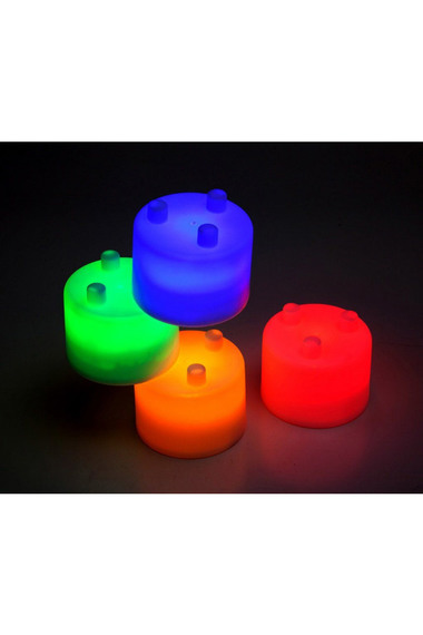 Особенности изделия: В упаковке 4 блока разных цветов - желтый, зеленый, голубой и красный. Каждый блок работает от двух батареек типа AG13 (включены). Материал - полипропелен Комплектация: блок светящийся желтым цветом - 1шт, блок светящийся синим цветом - 1шт, блок светящийся красным цветом - 1шт, блок светящийся зеленым цветом - 1шт, батарейки типа AG13 - 8шт